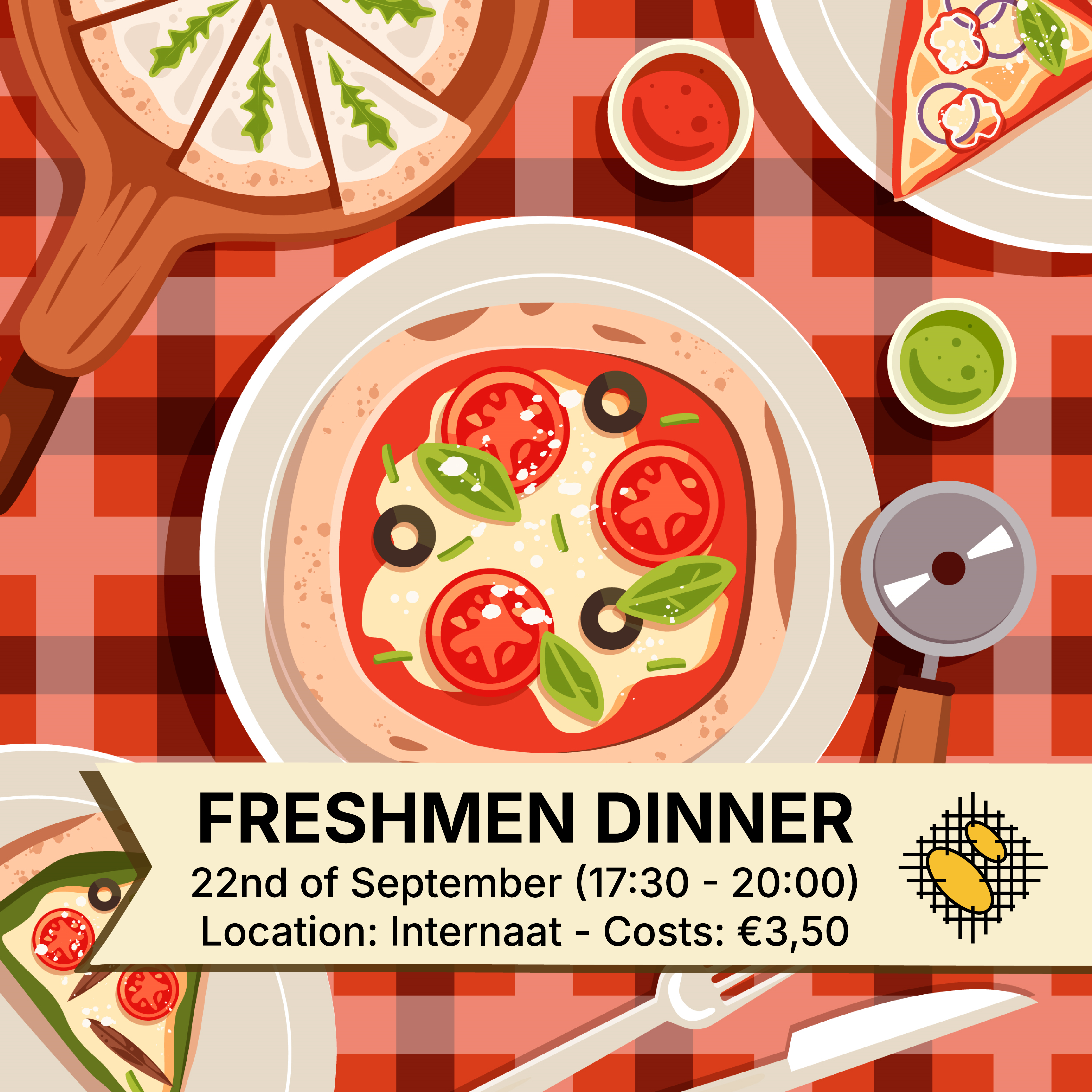Are you looking for a nice opportunity to meet fellow first year students or catch up with your friends? Then this dinner is the place to be! On the 22nd of September starting at 17:30, a lovely dinner will be provided for you for only €3,50!