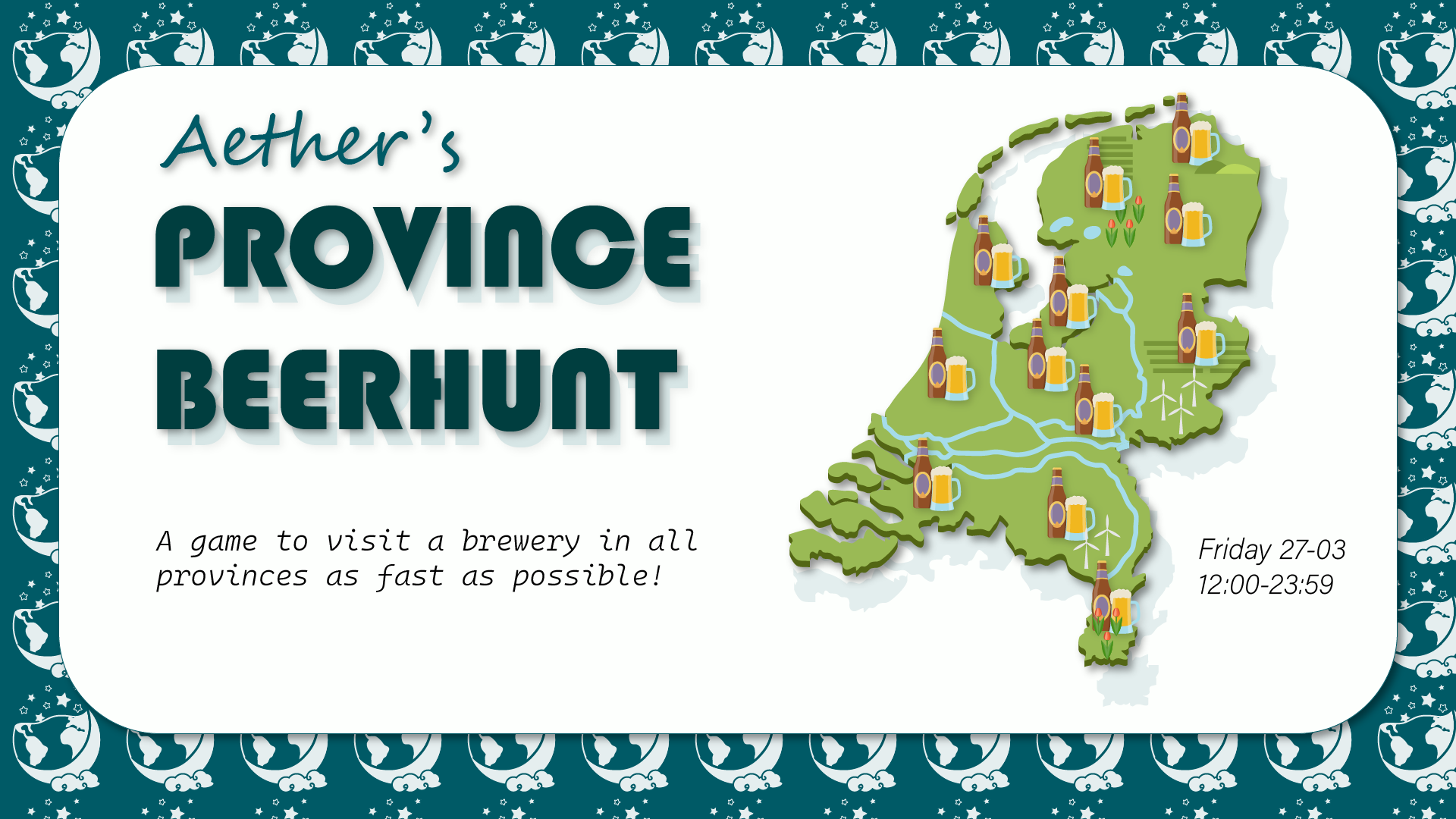 We meet up at 11:30 in the Internaat to explain the rules, and at 12:00 we'll be ready to jump in the first trainπ! At 23:59 everyone has to be back, and we can award the winners with the most breweries visited! ππ