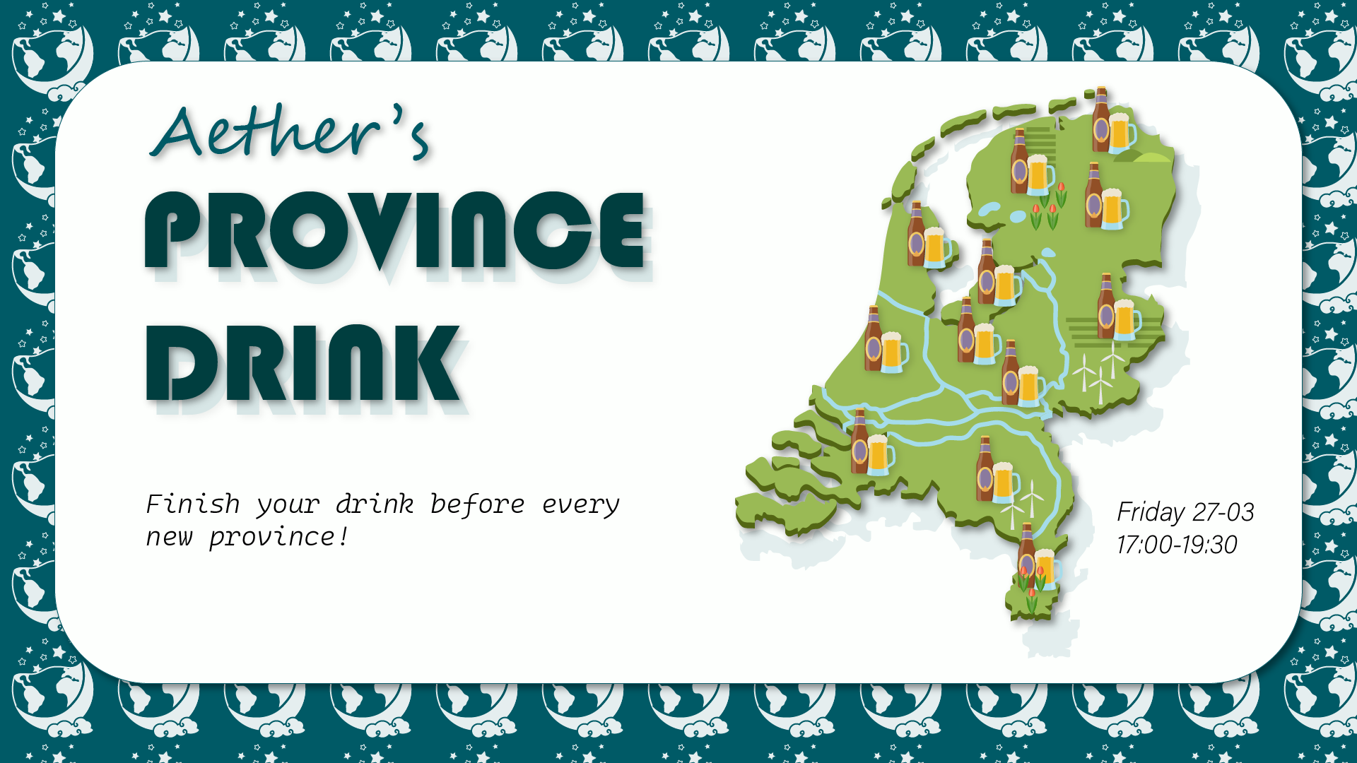 On Friday March 27th we will hold an escalation drink where we'll visit all provinces in 2 hours🍺! The rules are simple: Every time a province border is crossed, your beer has to be empty! 🫗