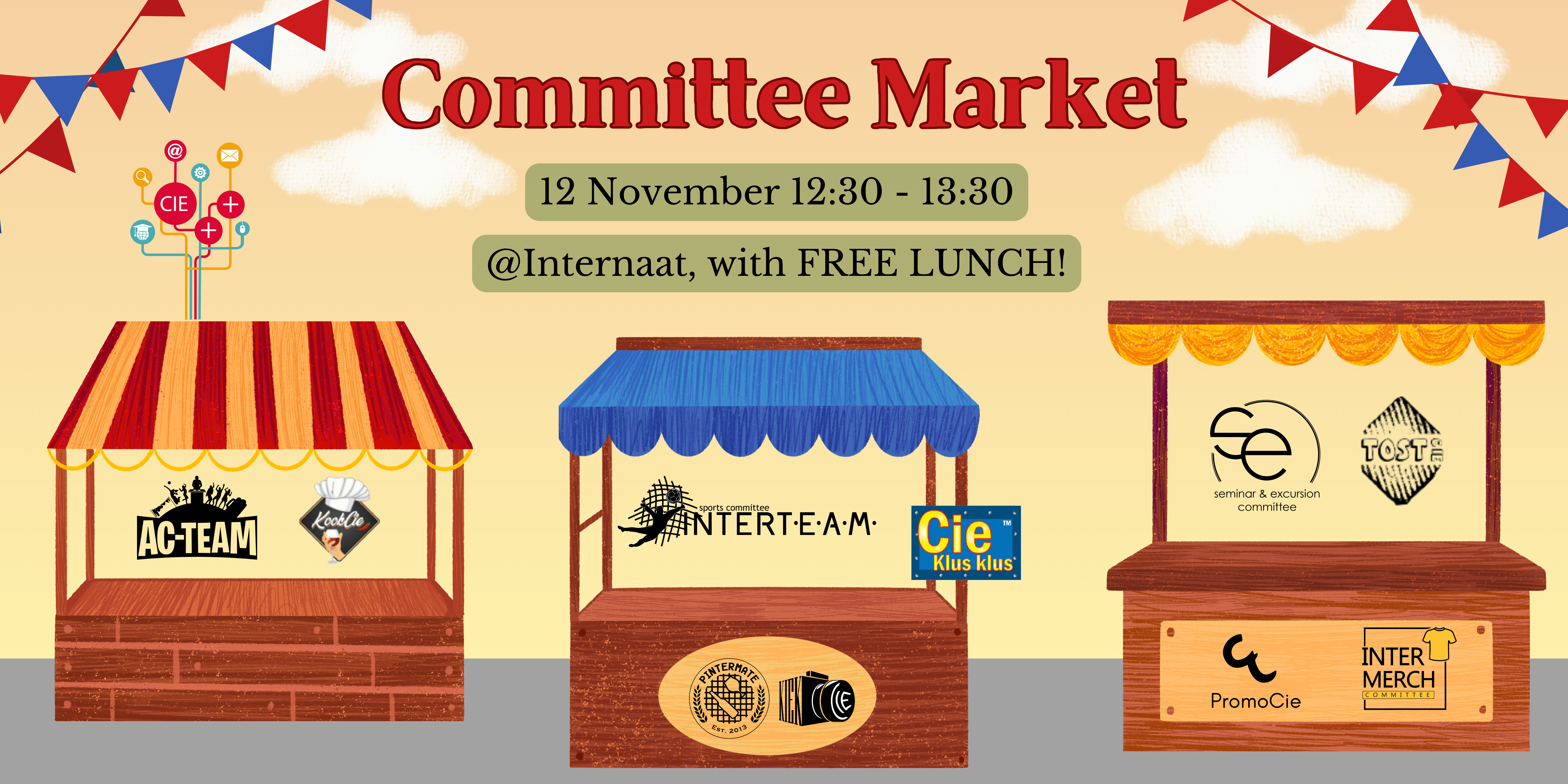 Interested in joining one of the amzing Intermate committees? Make sure to sign up for the year-round committee info lunch to hear more about them! This event will take place in the Internaat on November 12 from 12:30 - 13:30.