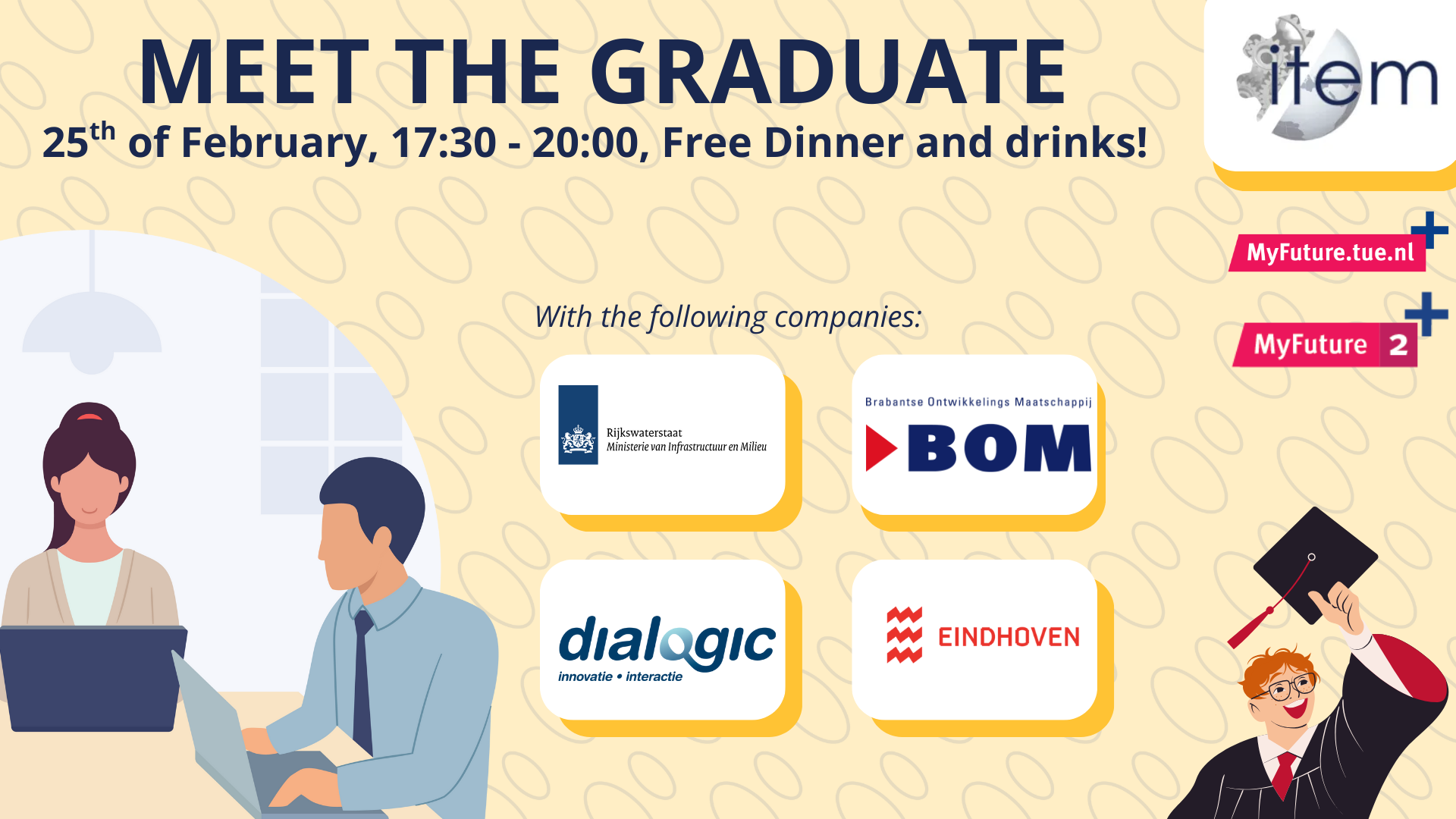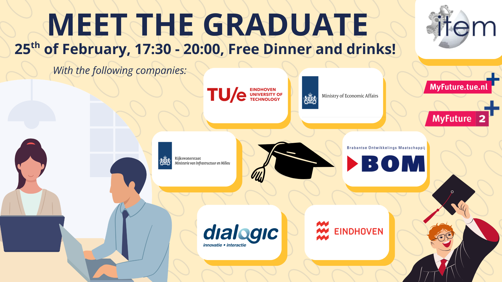 During this night, multiple graduates of our alumni association ITEM of the bachelor programs Psychology and Technology and Sustainable Innovation or master programs Human Technology Interaction, Innovation Management-sustainable transitions and Innovation Sciences will come to the Internaat for a night full of networking. The companies that will visit (for now) are: